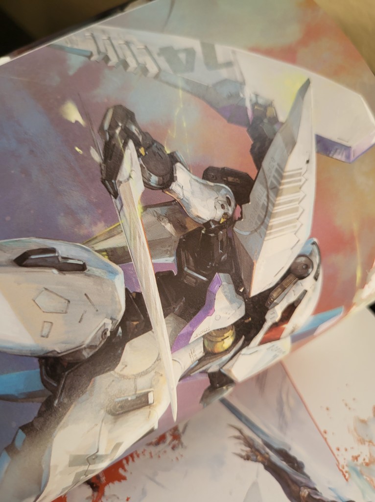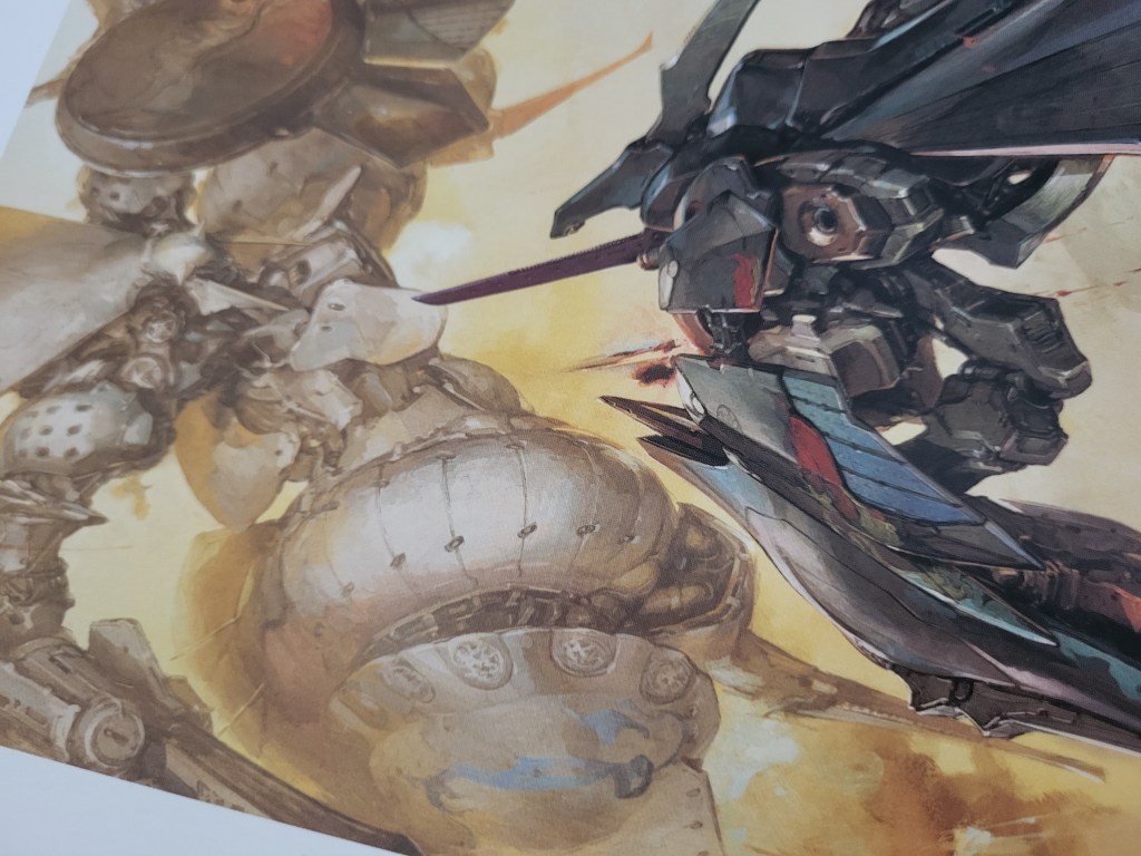 After leaving Treasure, Suzuki-San was asked to create some illustrations for the second installment of the Zone of the Enders series, The 2nd Runner. These illustrations were used for the box art of the Kotobukiya Non-scale Plastic model kits. He stated that drawing Jehuty at first was extremely difficult, due to the character design being rounded and most of the constituent surfaces being angled. While Yasushi had no involvement with the actual development of the game, The 2nd Runner is apparently on of his favorite games, citing the controls as great!