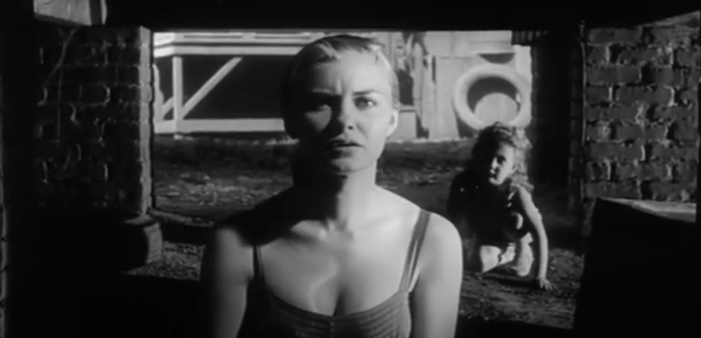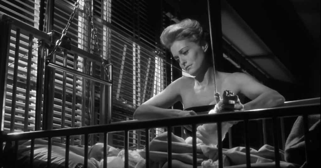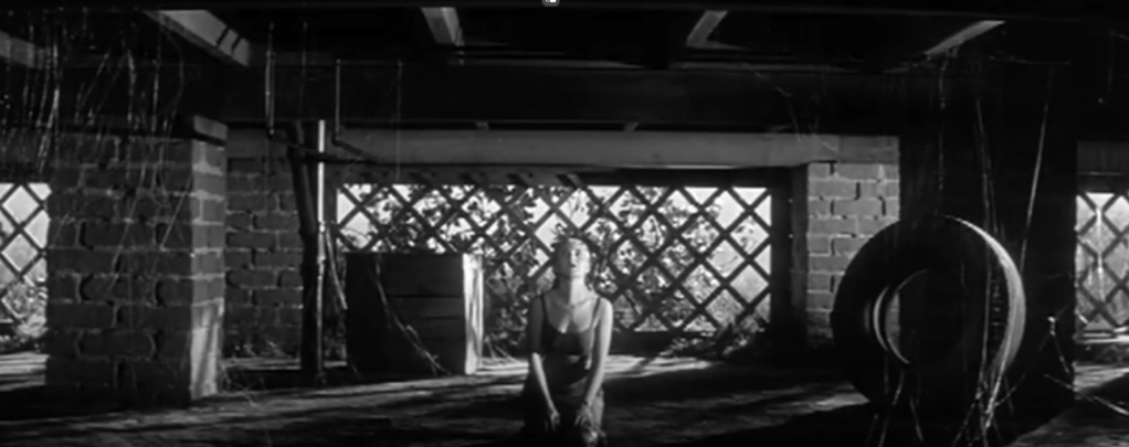 The Naked Kiss, directed by Samuel Fuller, follows an ex-prostitute that changes her ways and finds herself working as a nurse in a hospital for disabled children. She meets a man and eventually agrees to marry him. Unfortunately, before the wedding, she walks in on him committing a heinous crime and kills him. Once again, these unconventional themes allow Cortez to create beautifully haunting images. The shot near the end of the film, where the protagonist is in the jail cell, is one of the most remarkable shots I’ve ever seen in a film. The lighting and shadows, along with Constance Towers’ look of sorrow, is powerful. We are not on the same side of the bars as her. She is far removed from society. The shot itself is nothing grand or impossible. It’s the simplicity of it that is beautiful.